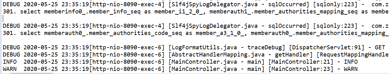 만약 JPA을 사용 중이라면 JPA에 log 옵션은 꺼야지 중복으로 안 나온다.