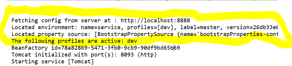 ~~~~ environment: name=service, profiles=[dev], label=master, version=26db33e02c1510476a57240049f652db79f005db, state=null ~~~~ Located property source: [BootstrapPropertySource {name='bootstrapProperties-configClient'}, BootstrapPropertySource {name='bootstrapProperties-git@github.com:kimsuhani93/msa-project.git/config/src/main/resources/dev/service-dev.yaml'}]