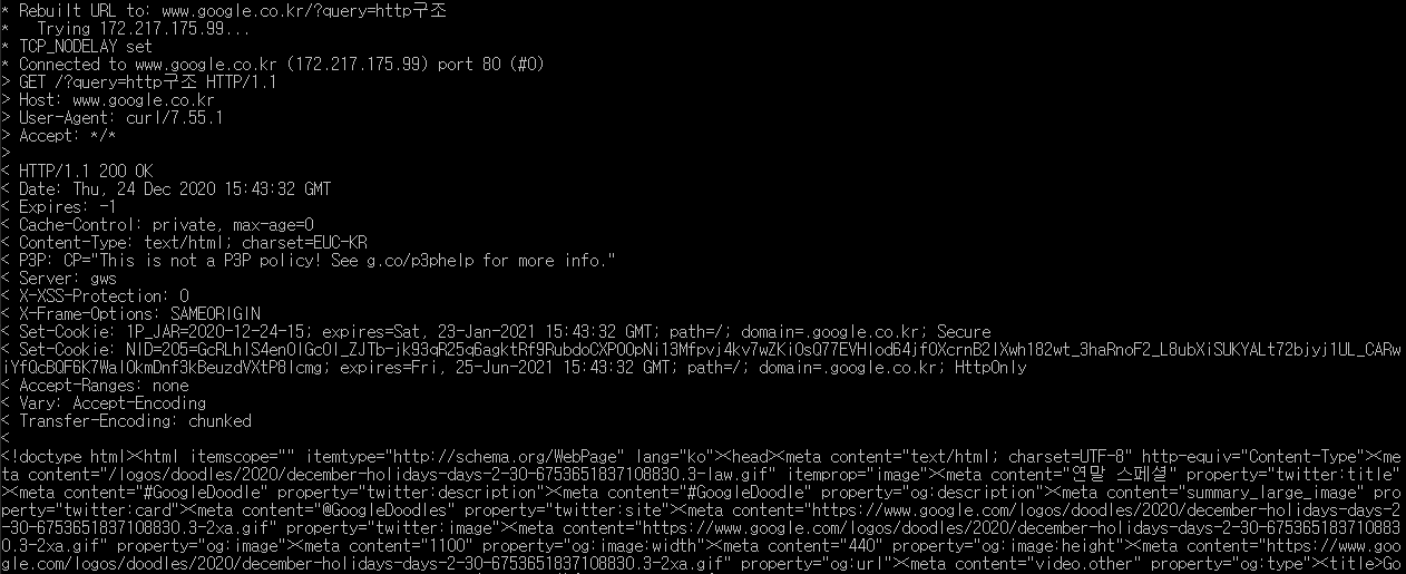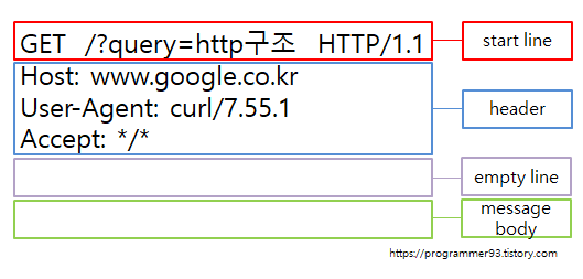 CURL로 요청을 보낸 "www.google.co.kr/?query=http구조" 의 HTTP Request 의 구조이다.